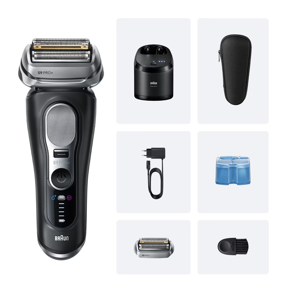 BRAUN neueste Series 9 Pro+: 9660ccPS silber mit ultradünnen Präzionsklingen, Reinigungsstation und gratis Scherteil (das PS in der Bezeichnung steht für gratis Scherteil)